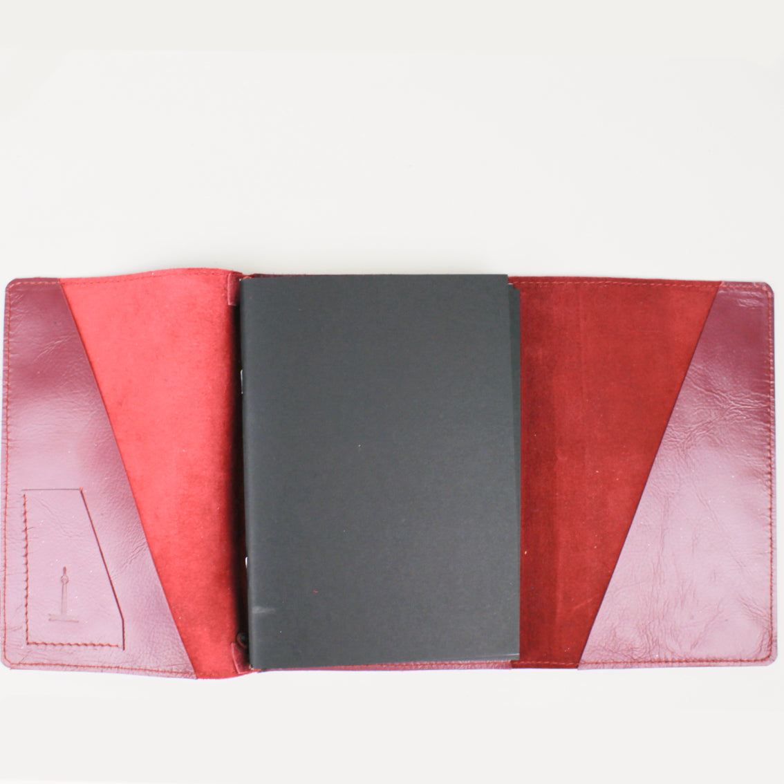 Organizer für bis zu 3 Notizhefte in Din A5, die mit Gummibändern gehalten und einfach ausgetauscht werden können. Das Leder ist upgecycelt, es war einmal ein Stuhlbezug auf dem Fernsehturm