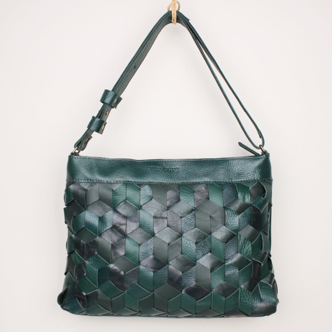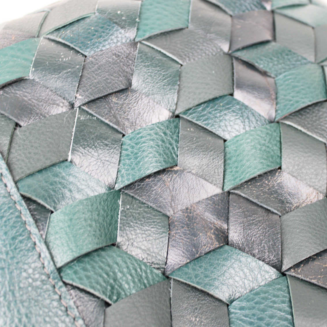 Dreidimensional geflochtene, gefütterte Handtasche im Din A 4 Format mit verstellbarem, Gurt aus upcycling Leder.